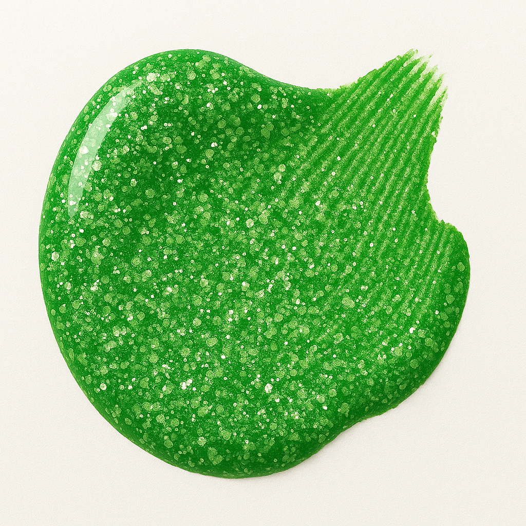 Not your average green. Grump sparkles with character. A bright green shot through with light-catching shimmer. Bold but grounded, it’s for the days you want a little drama.